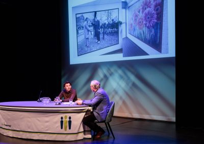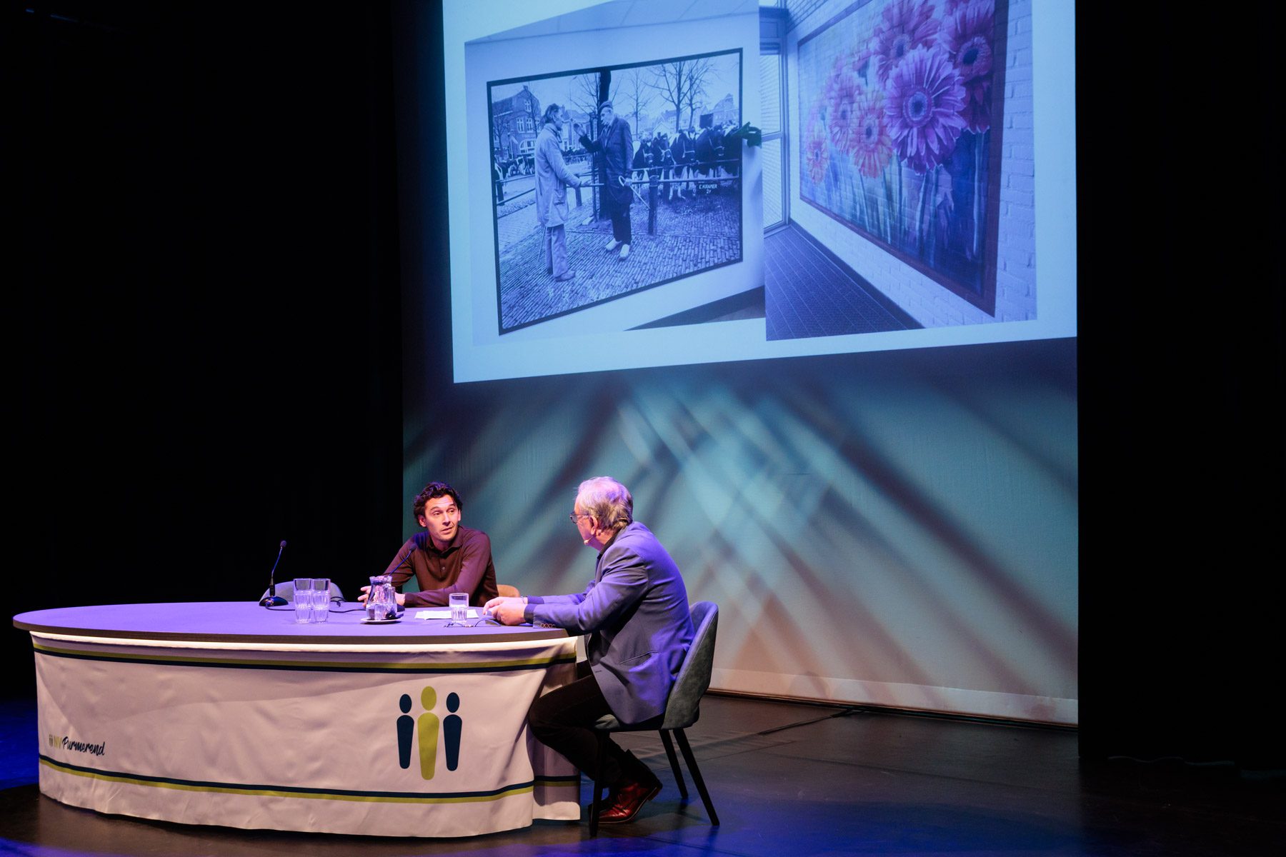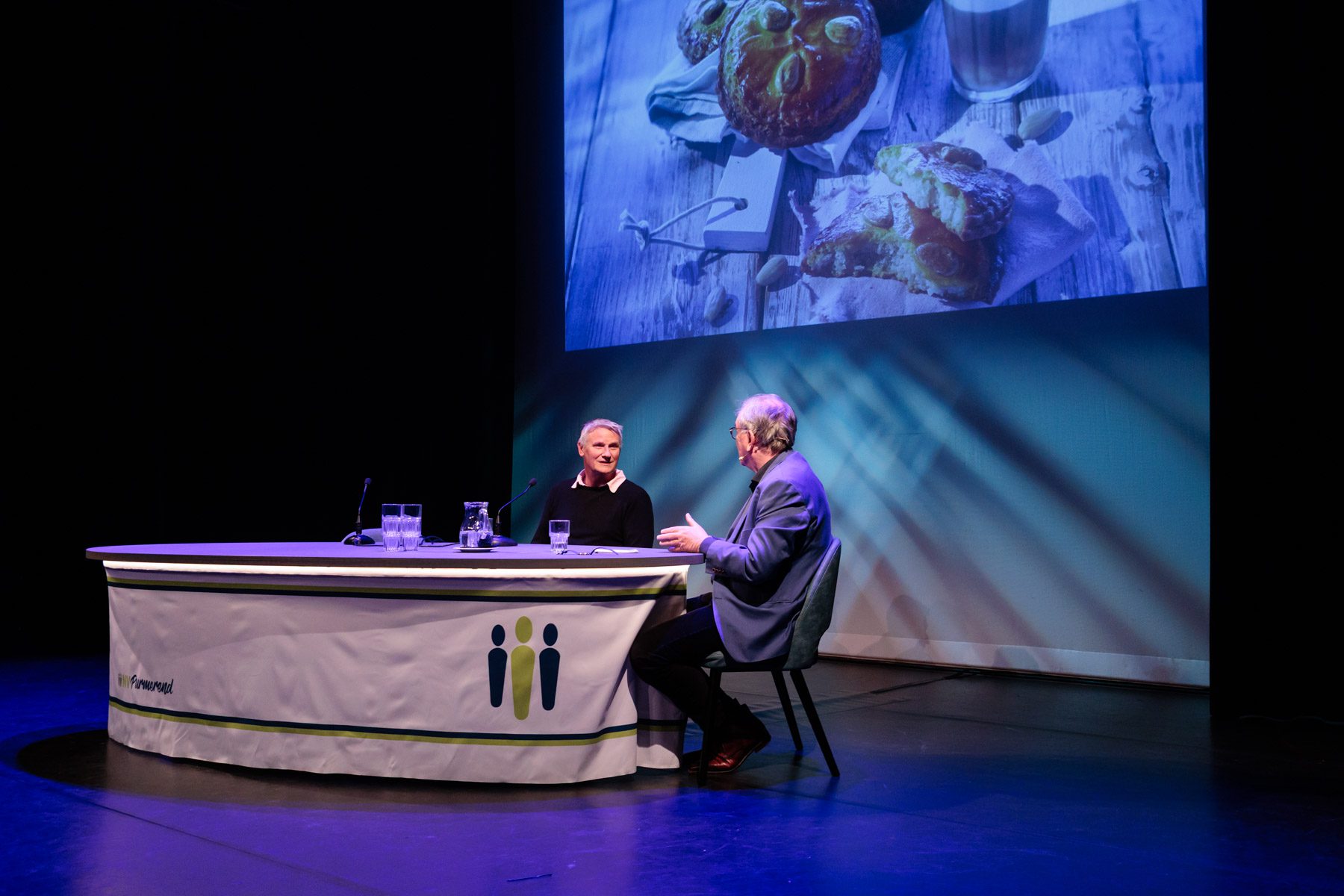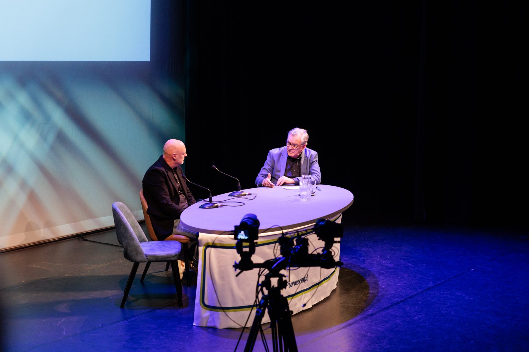 Met interviewer Jaap Sluis in Theater De Purmaryn in Purmerend