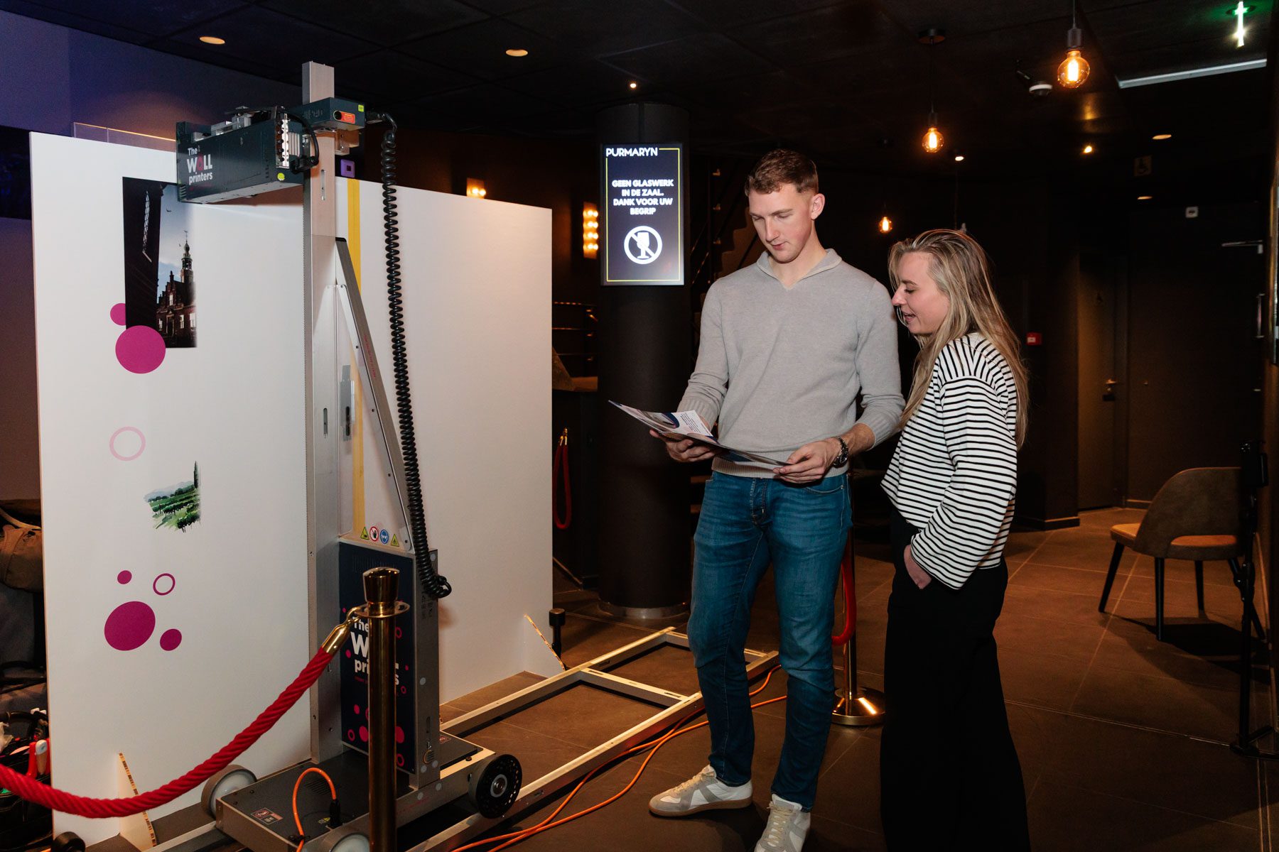 Niels vertelde ook kort over zijn nieuwe onderneming The Wallprinters, waarmee hij op vrijwel elke ondergrond unieke prints maakt. Zo wordt elke muur een persoonlijk kunstwerk.